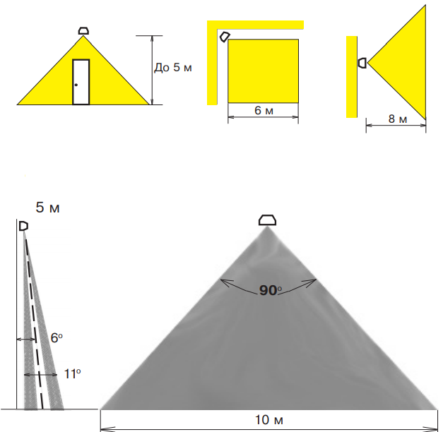 | Угол зоны обнаружения | 90° |